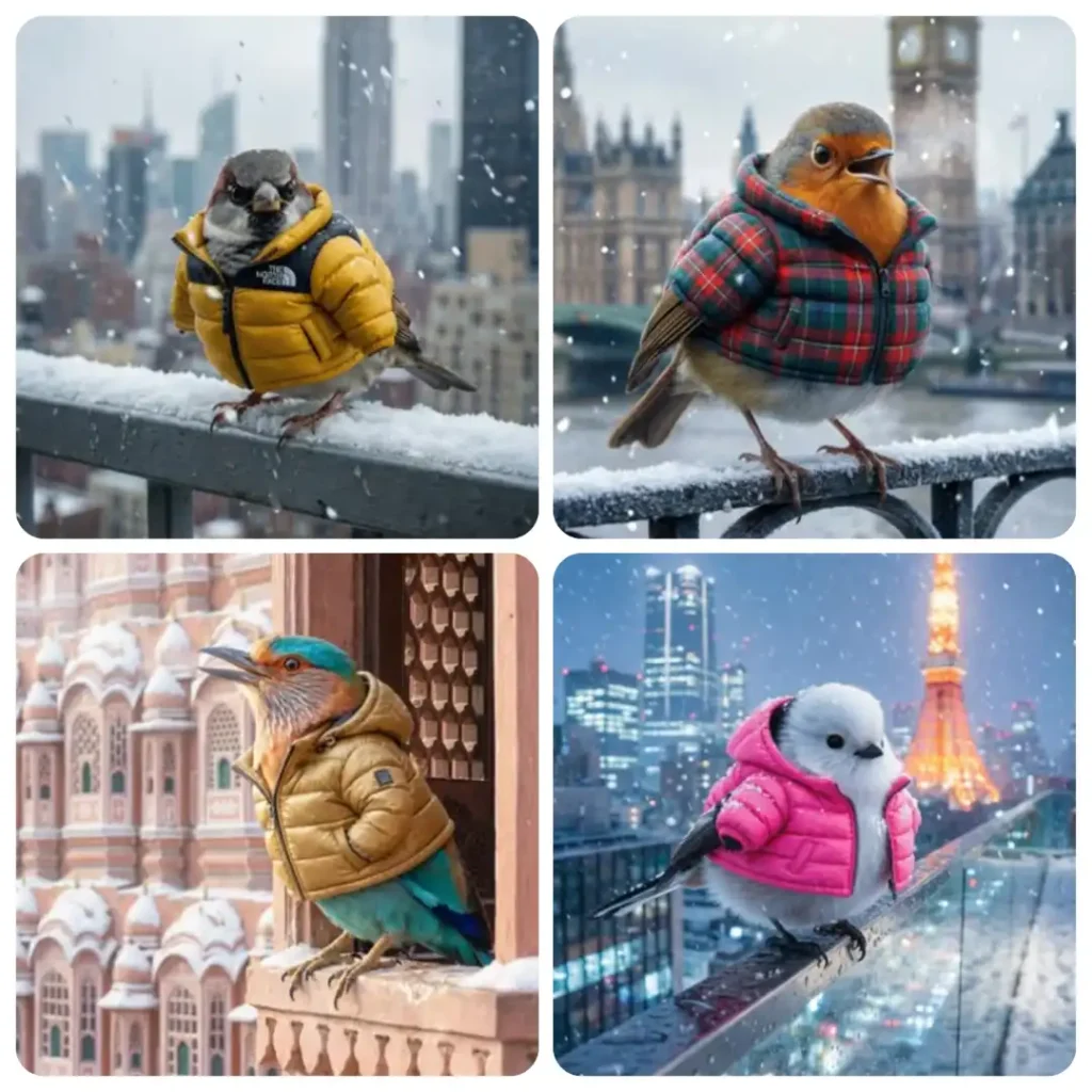 Shot 4: expressive shot with beak slightly open, wearing a mustard-yellow cardigan, refined head structure, cinematic lighting.​