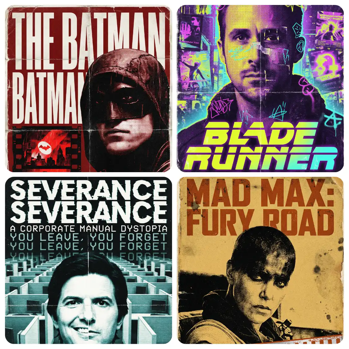 Details: Add graphic elements like film-strip panels showing iconic scenes at the bottom or side. Use uneven, torn-paper edges for image borders.